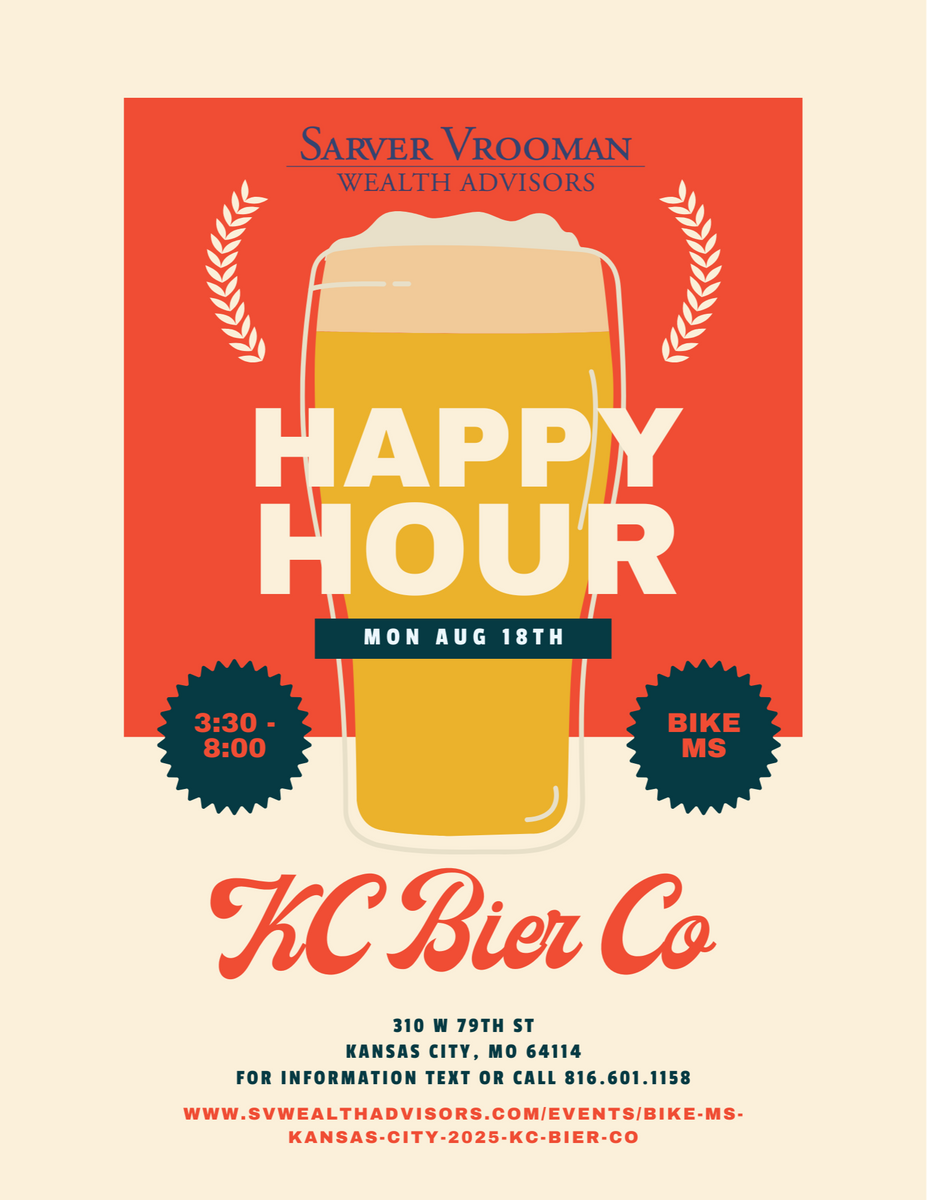 We’re excited to invite you to a special event at KC Bier Co featuring complimentary food and drinks! As a proud Silver Sponsor of Bike MS: Kansas City 2025, Sarver Vrooman Wealth Advisors is honored to help support The National Multiple Sclerosis Society. Join us for an enjoyable evening of great conversation as we come together to spread the word about this important cause. Feel free to bring a friend or colleague. It’s a perfect opportunity to connect, relax, and learn more about how we’re supporting this event. We look forward to seeing you there!
